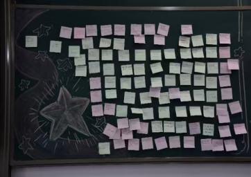 活动伊始,主持人以慷慨激昂的开场白拉开序幕,随后播放开场视频《红岩红》并由主持人介绍红岩精神形成历程,让学员回溯红岩精神与革命先辈的峥嵘岁月。紧接着,全体学员投身于“竞答峥嵘炼初心,红岩精神永存续”知识竞答环节,在快速抢答中比拼对红岩知识的了解。之后,学员们以小组为单位,齐心协力拼接红岩主题拼图并派代表上台简述拼图中的红岩故事,在拼图与讲述中再次回顾红岩故事的关键情节。随后,全体学员参与“青春寄语写赤诚”便利贴活动,纷纷写下对英雄的崇敬和对精神的感悟,并张贴在展示板上。最后,全体学员合唱团歌,主持人宣布活动圆满结束,并合影留念。