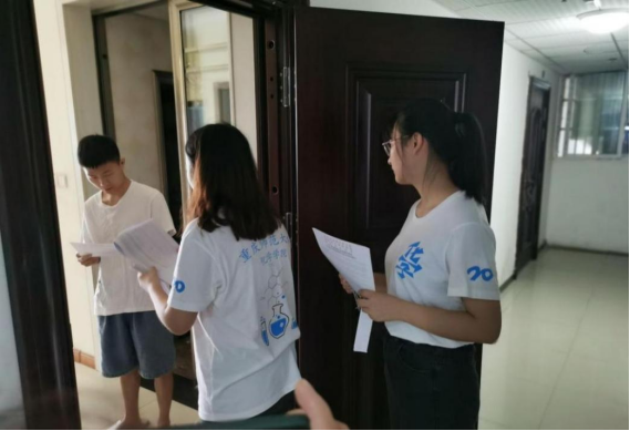 714日,化学学院红砖筑后坪,青春逐梦行实践团来到梓潼社区党群服务中心,开展入户宣传志愿活动。