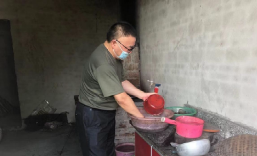 7月15日一早,我们来到中山镇白鹤村五保户家中打扫卫生。刚走下车,我看到一个步履蹒跚,衣着褴褛,背着背篓的老者向我们缓慢而来,我心头一颤——他就是五保户之一。走进他的家中,脏、乱到我无从下手,灶台全是污垢,锅碗瓢盆无一被幸免。在我犹豫要不要继续完成今天的打扫任务,柏老师直接撸起袖子,拿起那黑色的抹布开始擦,紧接着我们都上前帮忙。他没有要求我们怎么做,也没有命令我们去做,而是自己做好,用他的行为来主导我们,行动是无声的命令,身教是执行的榜样。