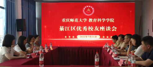 加强母校与校友的交流,进一步助推母校事业发展,2022年7月底,M88教育科学学院党委书记罗庆院长朱桂琴、党委副书记李林霖、团委书记杨逐以及辅导员但国艳一行与綦江区优秀校友开展座谈会。本次座谈会由孙忠凯老师主持,2008级应用心理专业封明静、2010级特殊教育专业赵越、2015级学前教育专业丁可星以及2016级学前教育专业罗双四位綦江区优秀校友共同参加。
