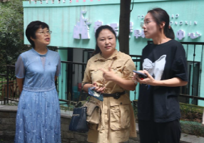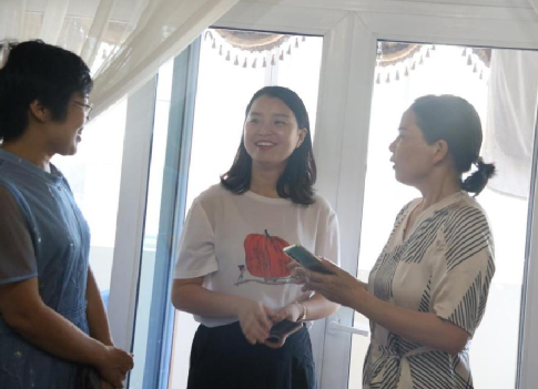 (图为朱桂琴院长、但国艳老师与夏雪同学交流) (图为老师们与具林燃同学交流)
