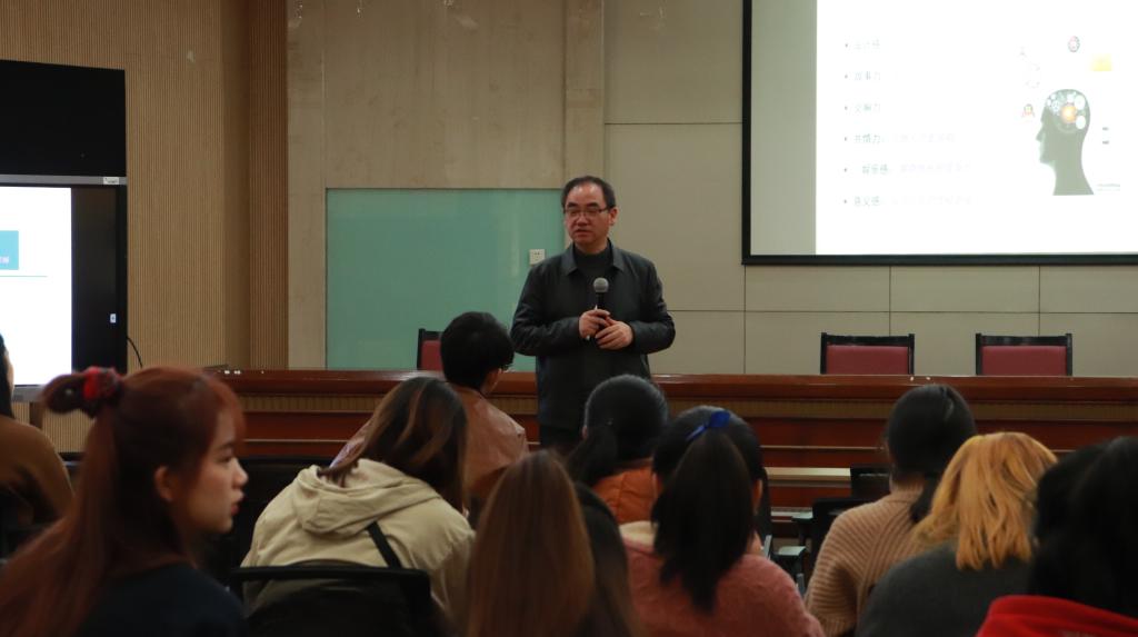 未来的职场需要的能力改变巨大,唯有拥有设计感、娱乐感、意义感、故事力、交响力、共情力,这“三感三力”才能决胜未来。谭教授开展了“你是左脑型人还是右脑型人”互动小游戏,增加了同学们的参与感,优势脑为右脑的同学更为感性,或许能在未来的工作中更不易被机器取代。智能时代,也是软技能时代,偏向文科、与人打交道的技能变得尤为重要。谭教授指出智能时代需要的职业能力,为我们点亮未来的明灯。