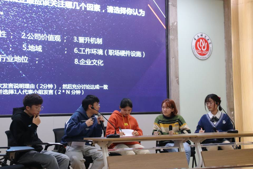 “因为我正处于毕业找工作的阶段,就以往的面试经历而言,我对无领导小组这一面试形式知之甚少,因此一得知活动开展的消息我就果断来参加了。”2017级新闻与传媒学院网络与新媒体专业的邹雨曦在活动结束后如是道,“这次活动给我带来的惊喜远超过预期,我以为会是枯燥的学术教导类讲座,但现场老师的言谈风趣,场景模拟所呈现出的效果更直观地展现出自由讨论环节角色的分配、时间的把控等关键性问题,既有趣又实用。”