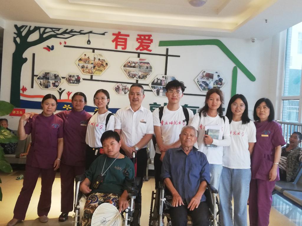 石院长希望通过他们的努力,让这些失能人员有一个快乐、健康、积极的心态,同时也希望社会各界包括相关政策对重度失能人员的辅助加大,多给予支持。通过与供养中心护理人员柳琴芳的交谈,同学们了解到这份工作需要24小时无时无刻的陪在这些失能人员身边,难免会忽略对家庭的关心,但她以及这里所有的护理人员都不后悔,她们就是这些失能人员生活中的阳光。通过此次调研,同学们深刻体会到了“敬老无亲疏天下高龄皆父母,老残不孤单人间晚辈尽儿女”的真谛所在。