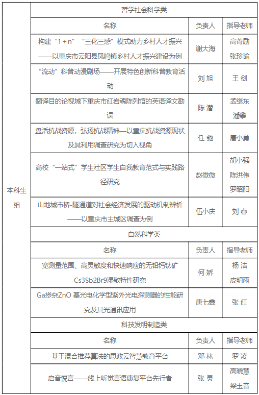 近期,第十八届“挑战杯”全国大学生课外学术科技作品竞赛M88赛区选拔赛在M88大学城校区举行。经相关评审老师、研究机构等各领域15位专家评审推荐,推选15个项目入围重庆市赛!按照《(渝青发【20239号)关于组织开展第十八届“挑战杯”全国大学生课外学术科技作品竞赛重庆市选拔赛的通知》精神,现对第十八届“挑战杯”全国大学生课外学术科技作品竞赛M88赛区选拔赛M88拟推荐参加重庆市赛的项目名单进行公示。具体项目信息如下: