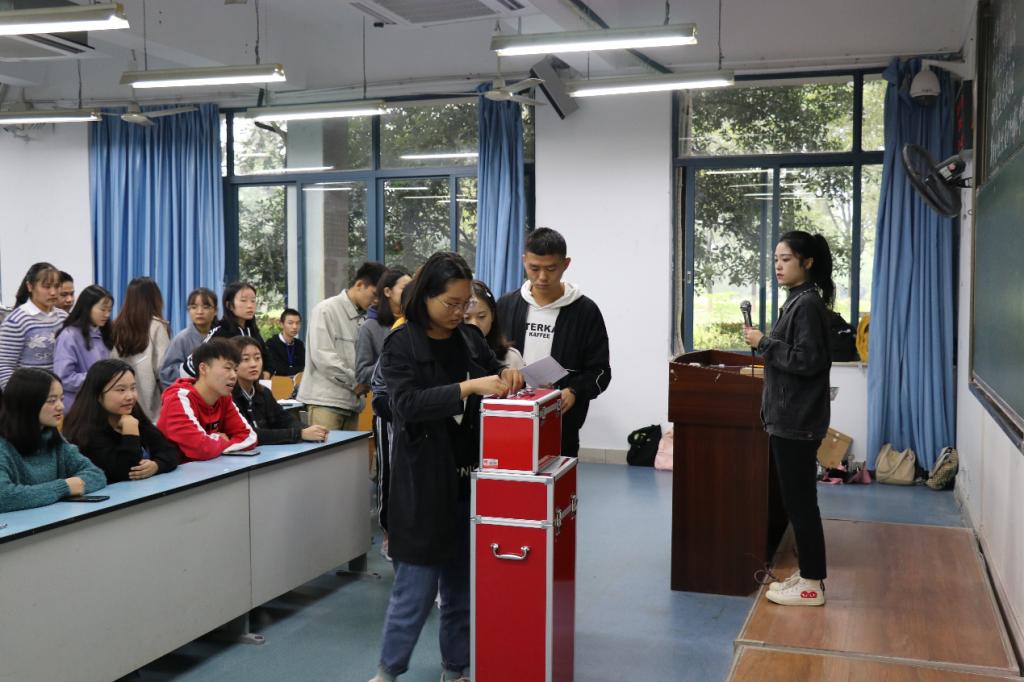 随后,主持人陈文君介绍了学院学代表大会选举候选人的要求,包括学代表必须从入学至今无挂科、处分记录,并特别提出要保证两方代表女性代表,少数民族代表的比例等的注意事项,要求各位选民严格按照文件要求进行选举工作。在对各候选人做了简单的介绍后,随即展开了客观公正的投票工作,公开地以无记名投票方式差额选举投票,监票员与计票员一起分发选票,选票分发完毕并查对无误后,代表们在监票员的监督下填写了自己的选票并且庄重地投进了票箱。