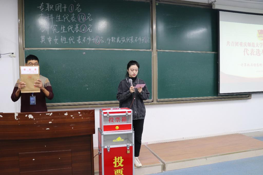 计信学院团总支书记钟华出席本次大会,团学会媒体中心副主任陈文君担任主持,2016至2019级各支部及研究生支部学代选民到场参加。